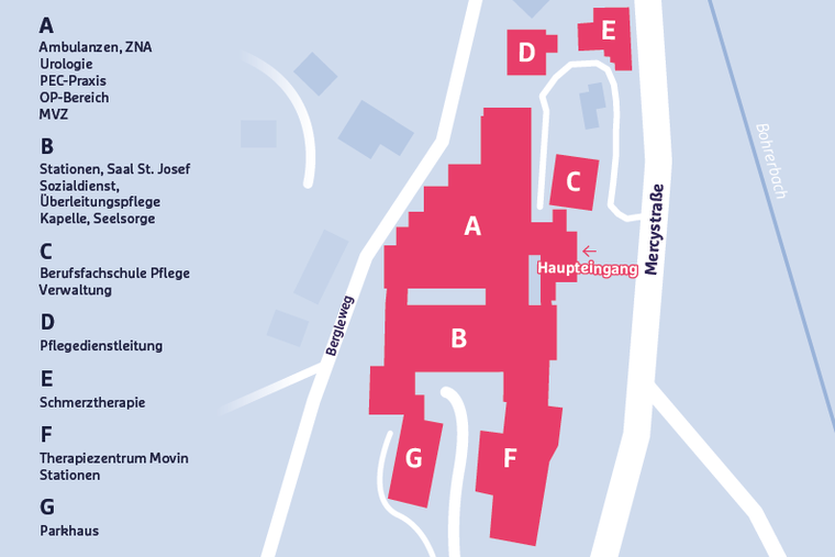 Alternativ können Sie auch unterhalb des Loretto-Krankenhauses in der Mercystraße parken, jedoch ist die Anzahl dieser öffentlichen Parkplätze leider begrenzt. Bitte vergessen Sie nicht, einen Parkschein aus den Automaten zu ziehen, wenn Sie auf der dem Eingang gegenüberliegenden Seite parken. Auf der Krankenhausseite ist das Parken kostenlos.